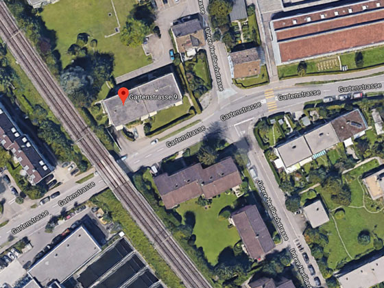 Einfahrt Tiefgarage vis-à-vis Gartenstrasse 4 unmittelbar bergwärts der SBB-Überführung.